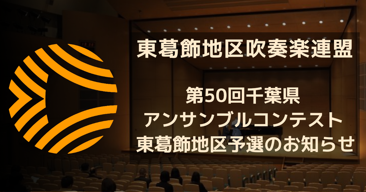 第50回千葉県アンサンブルコンテスト東葛飾地区予選の出場団体および観覧者の方へ、大会の情報を掲載しております。
