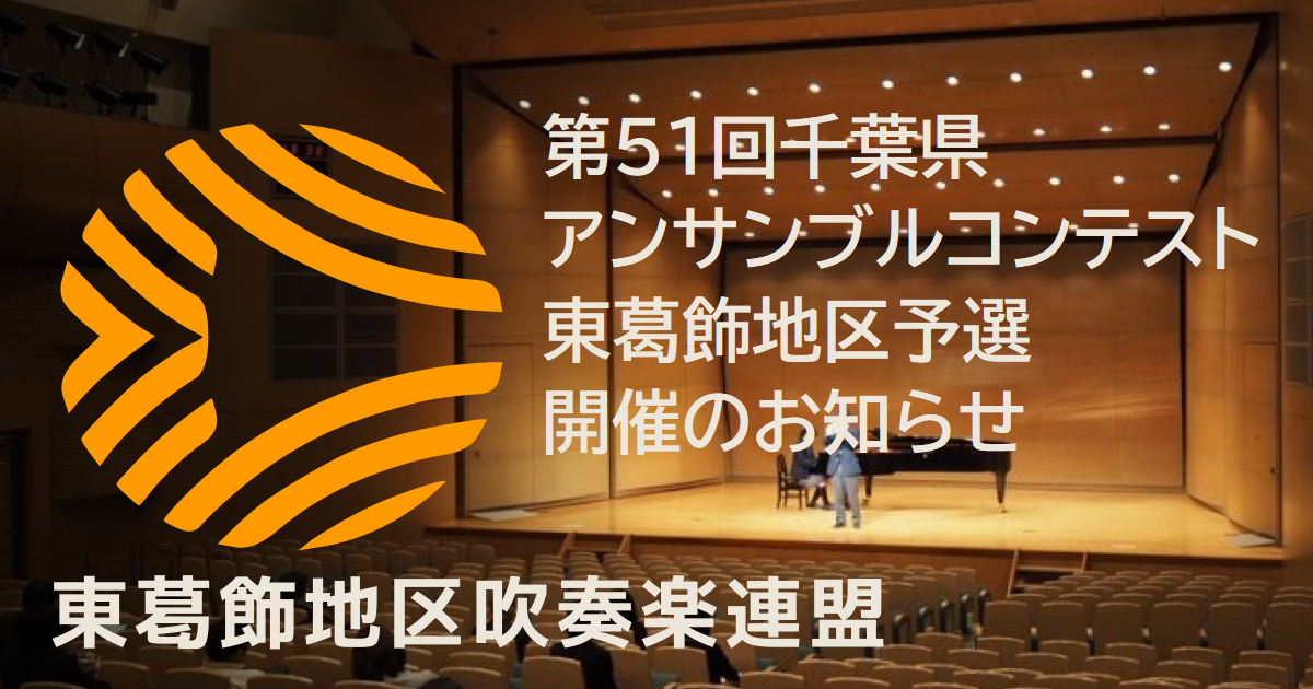 第51回千葉県アンサンブルコンテスト東葛飾地区予選の出場団体および観覧者の方へ、大会の情報を掲載しております。
